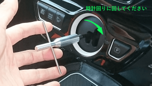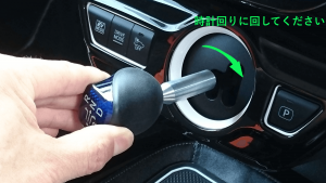 ③シフトエクステンダーに①で取り外した純正シフトノブ(シフトレバー)を取り付ける。(時計回りに回す)