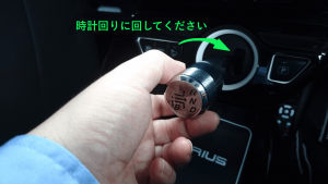 ①純正シフトノブ(シフトレバー)を純正シャフトから取り外す。(反時計回りに回す)